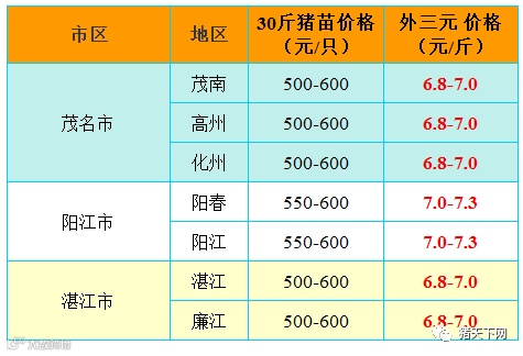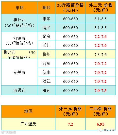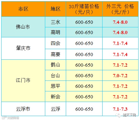有红绿颜色部分是相对昨天有所变动的猪价;