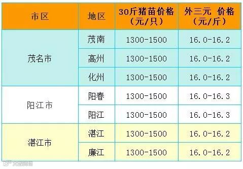 有红绿颜色部分是相对昨天有所变动的猪价;