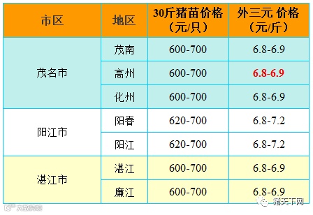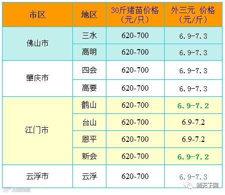 有红绿颜色部分是相对昨天有所变动的猪价;