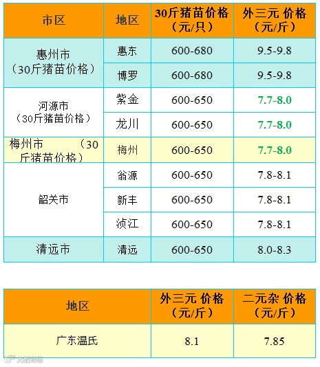 备注:猪价为喂湿料猪至喂干料猪出栏价格;