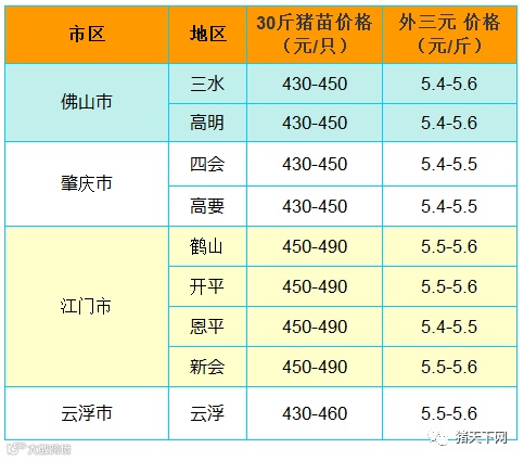 有红绿颜色部分是相对昨天有所变动的猪价;