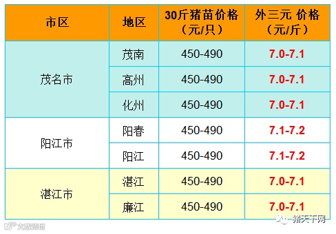 有红绿颜色部分是相对昨天有所变动的猪价;