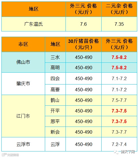 红色猪价是指比前一天价格高;