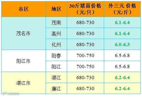 有红绿颜色部分是相对昨天有所变动的猪价;
