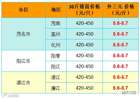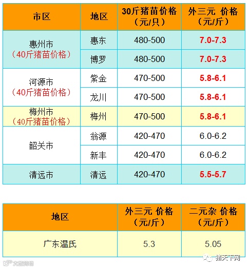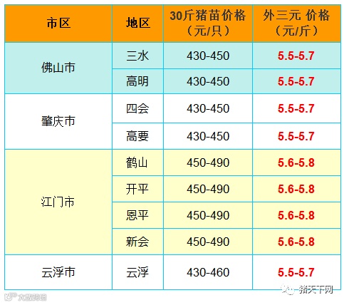 有红绿颜色部分是相对昨天有所变动的猪价;