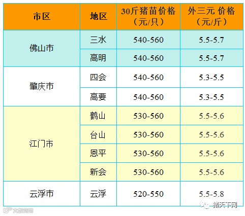 有红绿颜色部分是相对昨天有所变动的猪价;