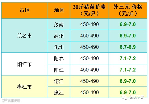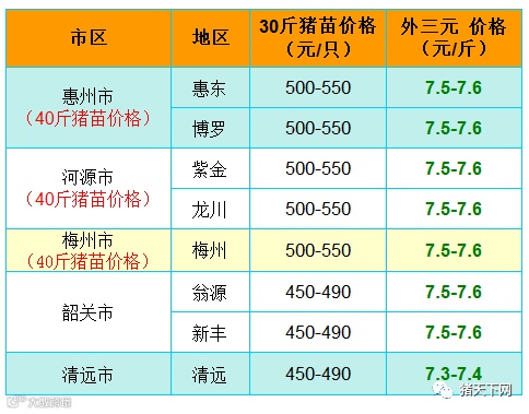 有红绿颜色部分是相对昨天有所变动的猪价;
