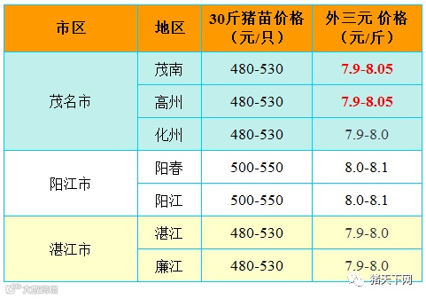红色猪价是指比前一天价格高;