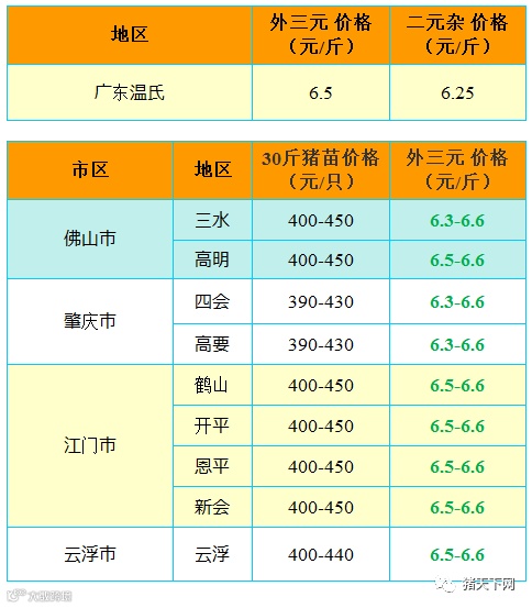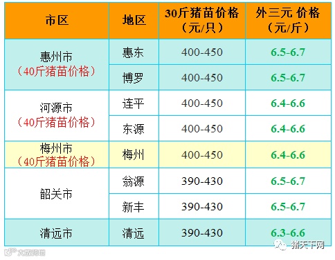 有红绿颜色部分是相对昨天有所变动的猪价;