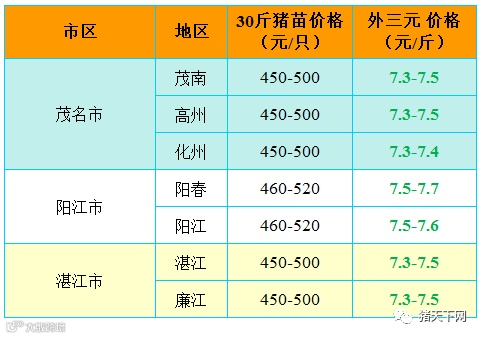 有红绿颜色部分是相对昨天有所变动的猪价;