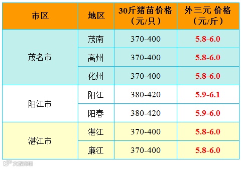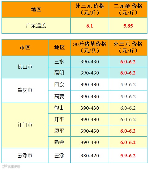 红色猪价是指比前一天价格高;