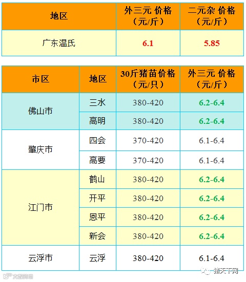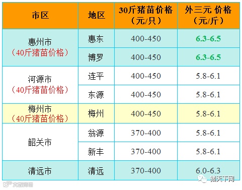 有红绿颜色部分是相对昨天有所变动的猪价;