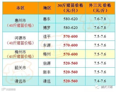 有红绿颜色部分是相对昨天有所变动的猪价;