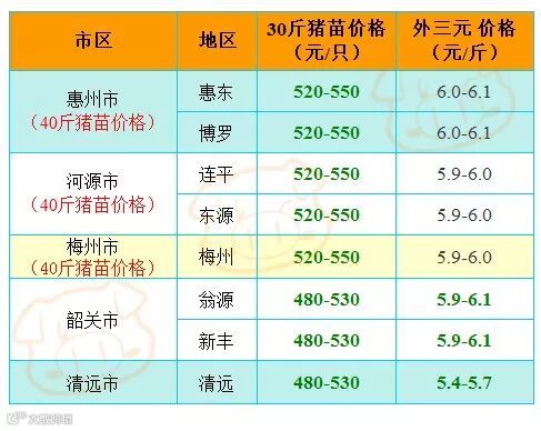 有红绿颜色部分是相对昨天有所变动的猪价;