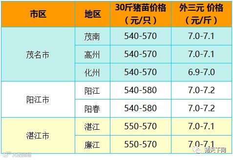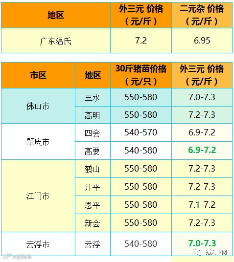 有红绿颜色部分是相对昨天有所变动的猪价;
