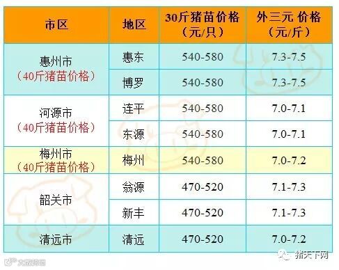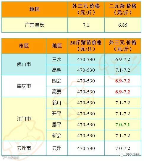有红绿颜色部分是相对昨天有所变动的猪价;