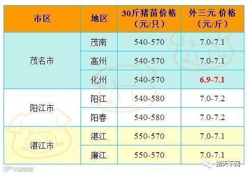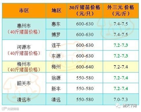 有红绿颜色部分是相对昨天有所变动的猪价;