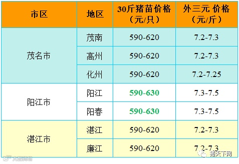 有红绿颜色部分是相对昨天有所变动的猪价;