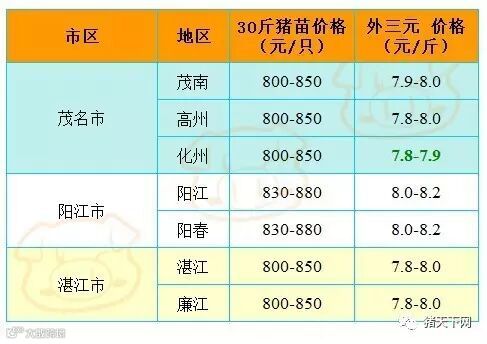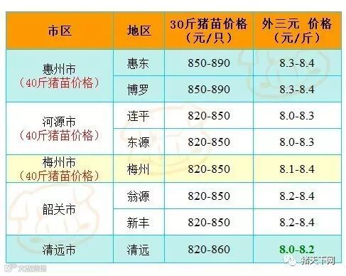 有红绿颜色部分是相对昨天有所变动的猪价;