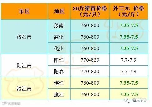 有红绿颜色部分是相对昨天有所变动的猪价;