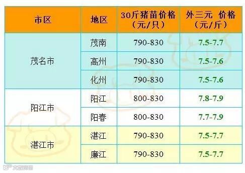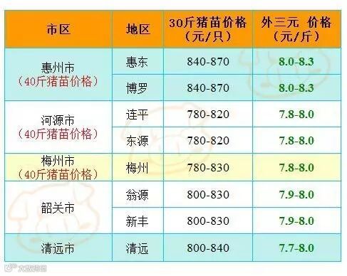 有红绿颜色部分是相对昨天有所变动的猪价;
