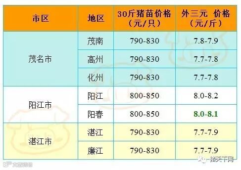 有红绿颜色部分是相对昨天有所变动的猪价;