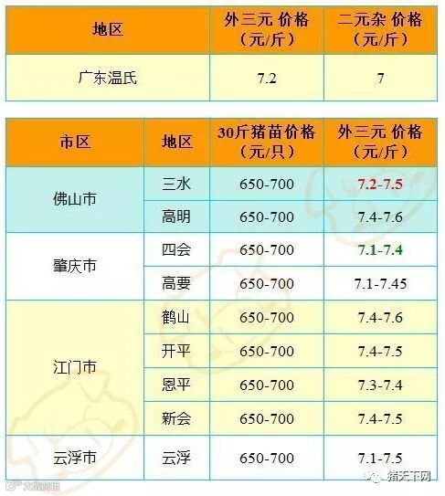 有红绿颜色部分是相对昨天有所变动的猪价;