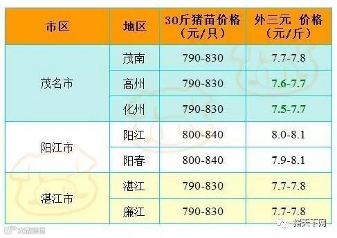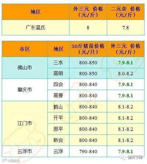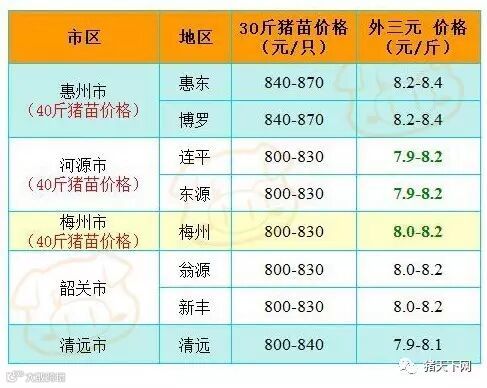 有红绿颜色部分是相对昨天有所变动的猪价;
