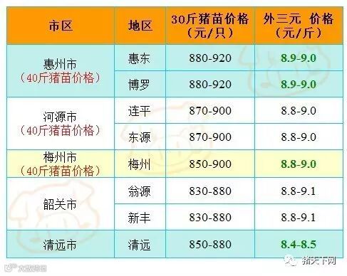 有红绿颜色部分是相对昨天有所变动的猪价;