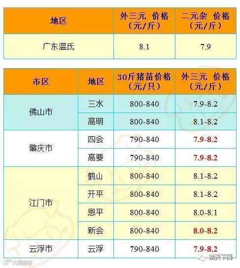 红色猪价是指比前一天价格高;