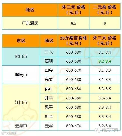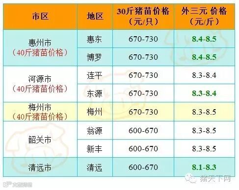 有红绿颜色部分是相对昨天有所变动的猪价;