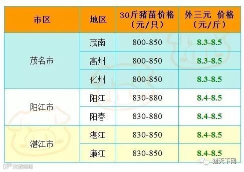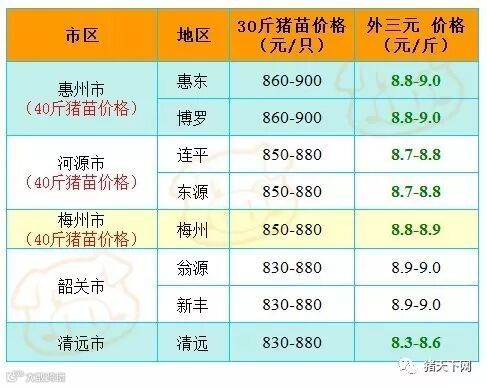 有红绿颜色部分是相对昨天有所变动的猪价;