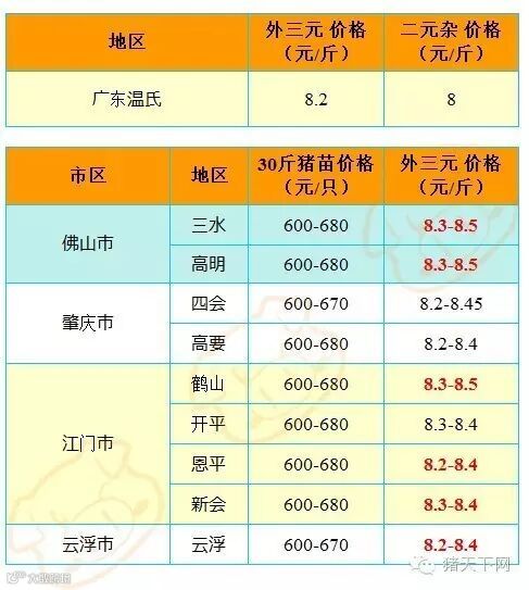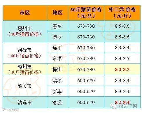 有红绿颜色部分是相对昨天有所变动的猪价;