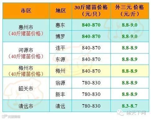有红绿颜色部分是相对昨天有所变动的猪价;