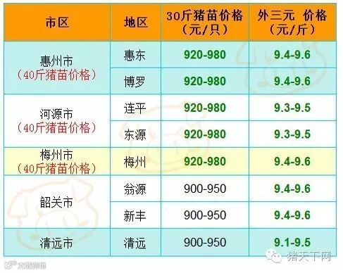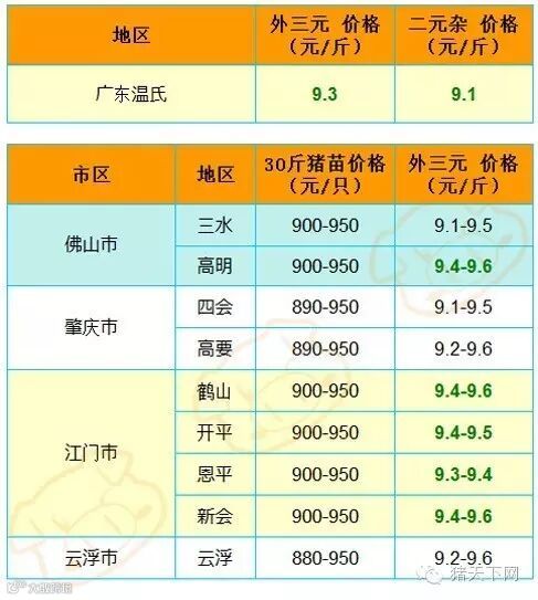 有红绿颜色部分是相对昨天有所变动的猪价;