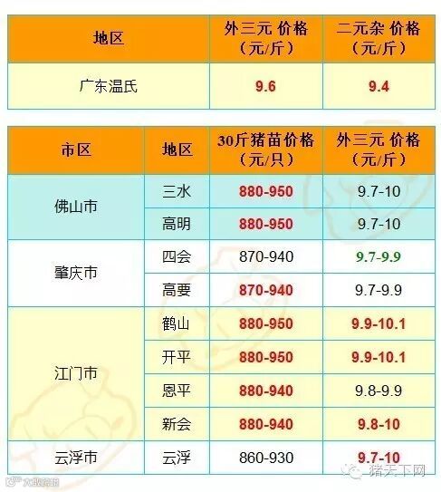 红色猪价是指比前一天价格高;