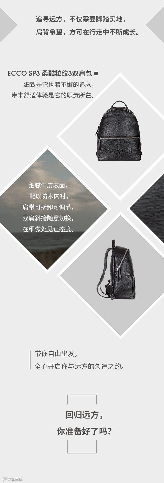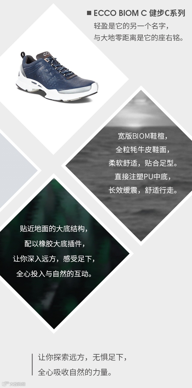 ECCO成立于1963年,作为北欧丹麦鞋履及皮具品牌,一直致力于将舒适与风格完美结合。其成功源于符合人体工学的产品设计及优质皮革。ECCO 是世界上为数不多完全达到资源垂直整合模式的制鞋公司之一,采用自上而下的营运模式,每个环节都直接监管.