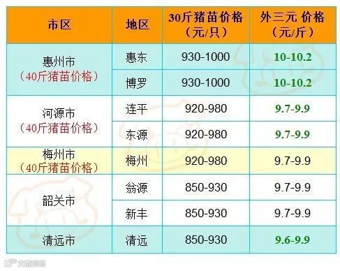 有红绿颜色部分是相对昨天有所变动的猪价;