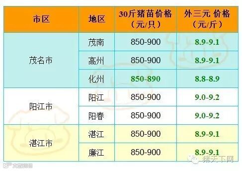 有红绿颜色部分是相对昨天有所变动的猪价;