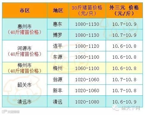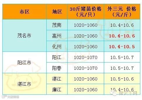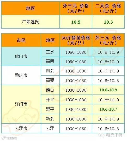有红绿颜色部分是相对昨天有所变动的猪价;