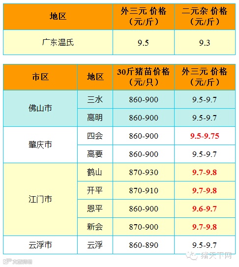 红色猪价是指比前一天价格高;