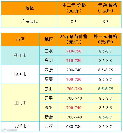 备注:猪价为喂湿料猪至喂干料猪出栏价格;
