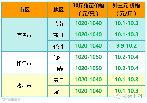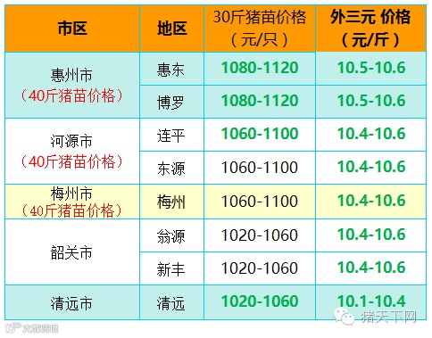 有红绿颜色部分是相对昨天有所变动的猪价;
