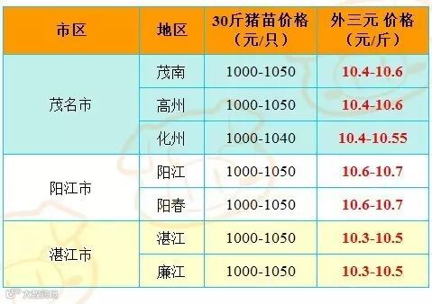 红色猪价是指比前一天价格高;