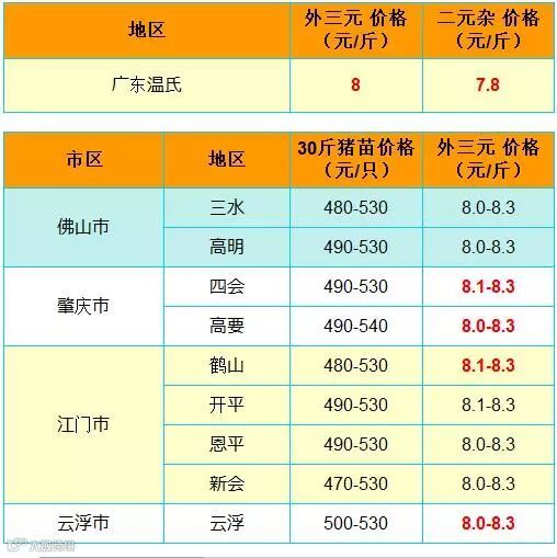 红色猪价是指比前一天价格高;