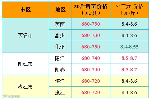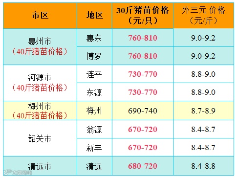 红色猪价是指比前一天价格高;