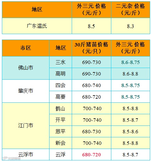 备注:猪价为喂湿料猪至喂干料猪出栏价格;
