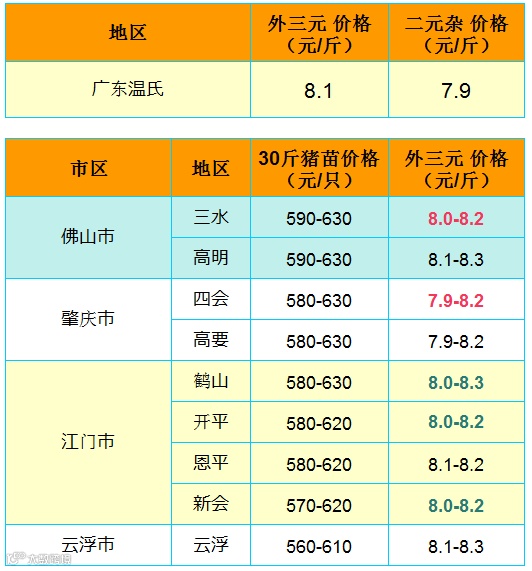 红色猪价是指比前一天价格高;