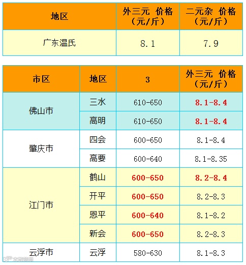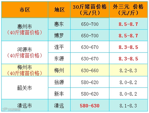 红色猪价是指比前一天价格高;