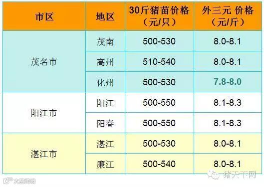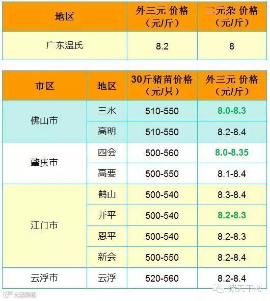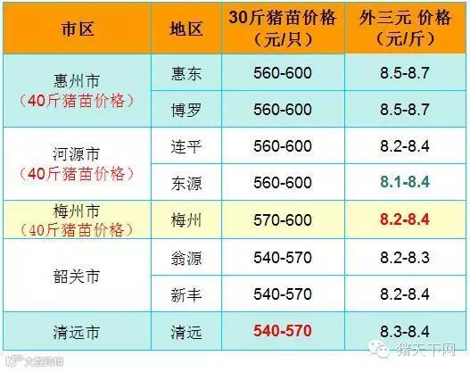 有红绿颜色部分是相对昨天有所变动的猪价;